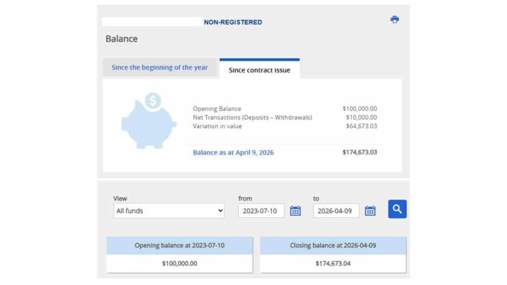 - 投资项目: Canada Life Segregated Funds (Non-Reg)