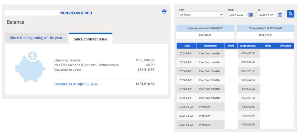 2023年3月,在AiF顾问的建议下,James开设了TFSA账户,投入5.2万加元进入IA保本基金账户。四个月后,他追加了10万加元自有资金。