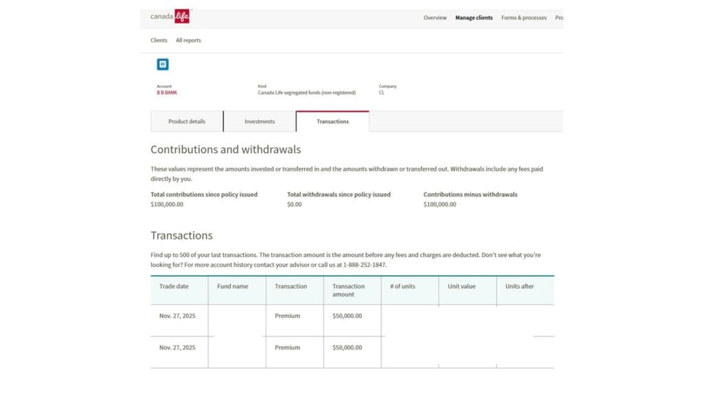 B2B Bank 3:1 投资贷款 → Canada Life Segregated Funds