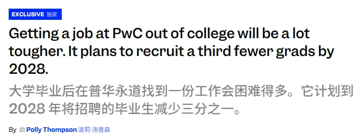 一个让留学生和财经圈都揪心的消息:普华永道(PwC)宣布,到 2028 年,其美国办公室的初级岗位将减少近三分之一。