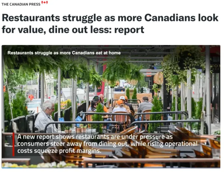 随着生活成本攀升,加拿大四分之三消费者减少外出就餐,81% 的年轻人首当其冲。餐厅成本上涨、利润被压,41% 餐厅处于亏损状态。