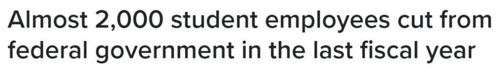 最近一条新闻引发广泛关注:加拿大联邦政府在 2024 至 2025 年间,裁减了近 2,000 个学生岗位,下降幅度接近 20%。这波动作在税务局尤为明显:2024 年 3 月税务局还雇有 1,356 名学生员工,而一年后只剩 268 人。