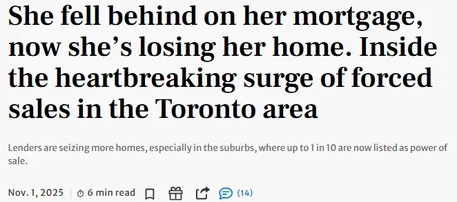 多伦多一位房主因漏缴一次房贷被换锁驱逐,GTA地区强制售房比例飙升至9.9%。专家警告高利率与租金断流正引发房贷违约潮。