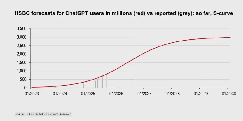 汇丰环球投资研究(HSBC Global Investment Research)在 2024 年 11 月发布的研报《OpenAI:重新分析承诺与现金流》(OpenAI: Reassessing Promises and Cash Flow)给出了一个极其明确、也极其残酷的财务模型推演。