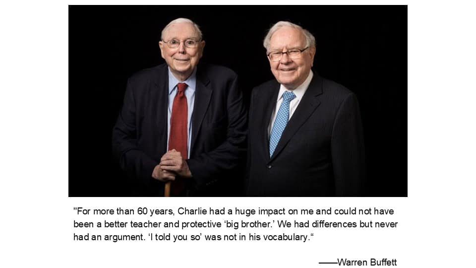 如果说巴菲特的成就只有一半,那么另一半功劳一定归功于他的黄金搭档——查理·芒格。