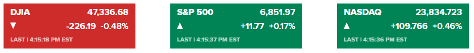 Read More周一,美股走势分化,纳斯达克指数上涨,受亚马逊及多家人工智能(AI)龙头股带动,投资者继续押注AI领域,市场迎来11月的良好开局。