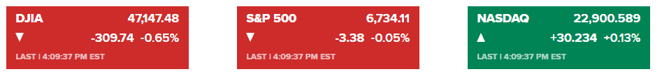 30只成分股组成的道指下跌约800点,回吐了周三突破48,000点关口时的涨幅;纳指则重挫逾2%,科技巨头普遍受挫。