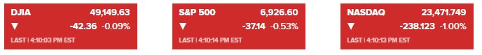 标普 500 指数下跌 0.5%,道琼斯工业平均指数下跌约 42 点,跌幅约 0.1%。纳斯达克综合指数下挫 1%。