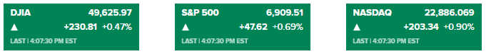 标普500指数上涨0.69%,纳斯达克综合指数上涨0.9%,道琼斯工业平均指数上涨230.81点,涨幅0.47%。道指在早盘一度因疲弱的经济数据下跌约200点,但随后实现反弹。